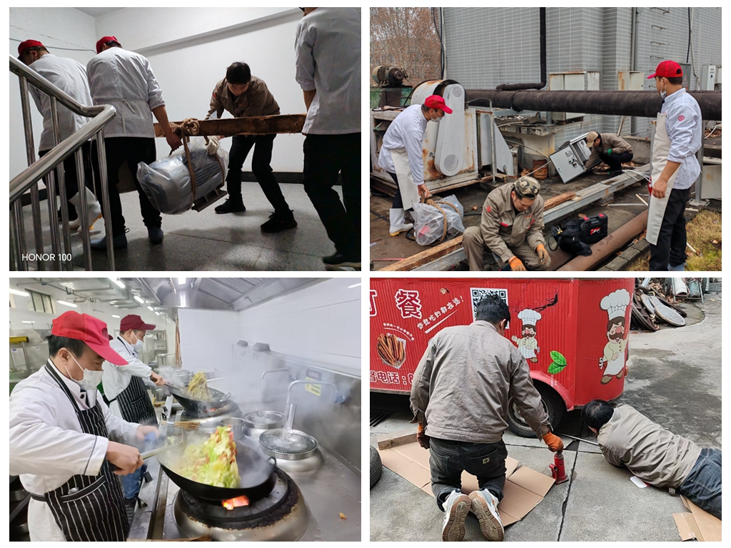 饮食办事核心除对餐厨设备如洗碗机、抽油烟机、灶具、冰箱等大型设备进行全面维修、清洗外,曲江校区食堂除了供应品种多样的大锅菜,清理景园和西二楼北花圃道积雪。